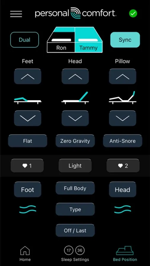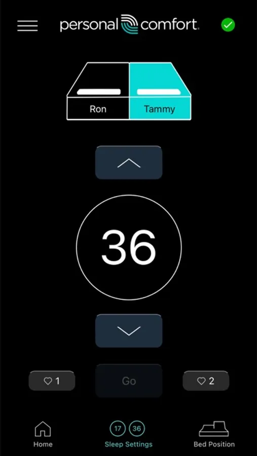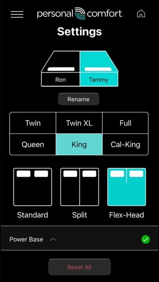 The Personal Comfort® app allows you to control both the Personal Comfort® number bed mattress and the Power-Flex™ adjustable bed base. This allows you the ability to control your number bed sleep system with your iPhone or iPad quickly. By using the app you no longer need to control the Personal Comfort® bed with the wired mattress hand controls and/or power base remotes.