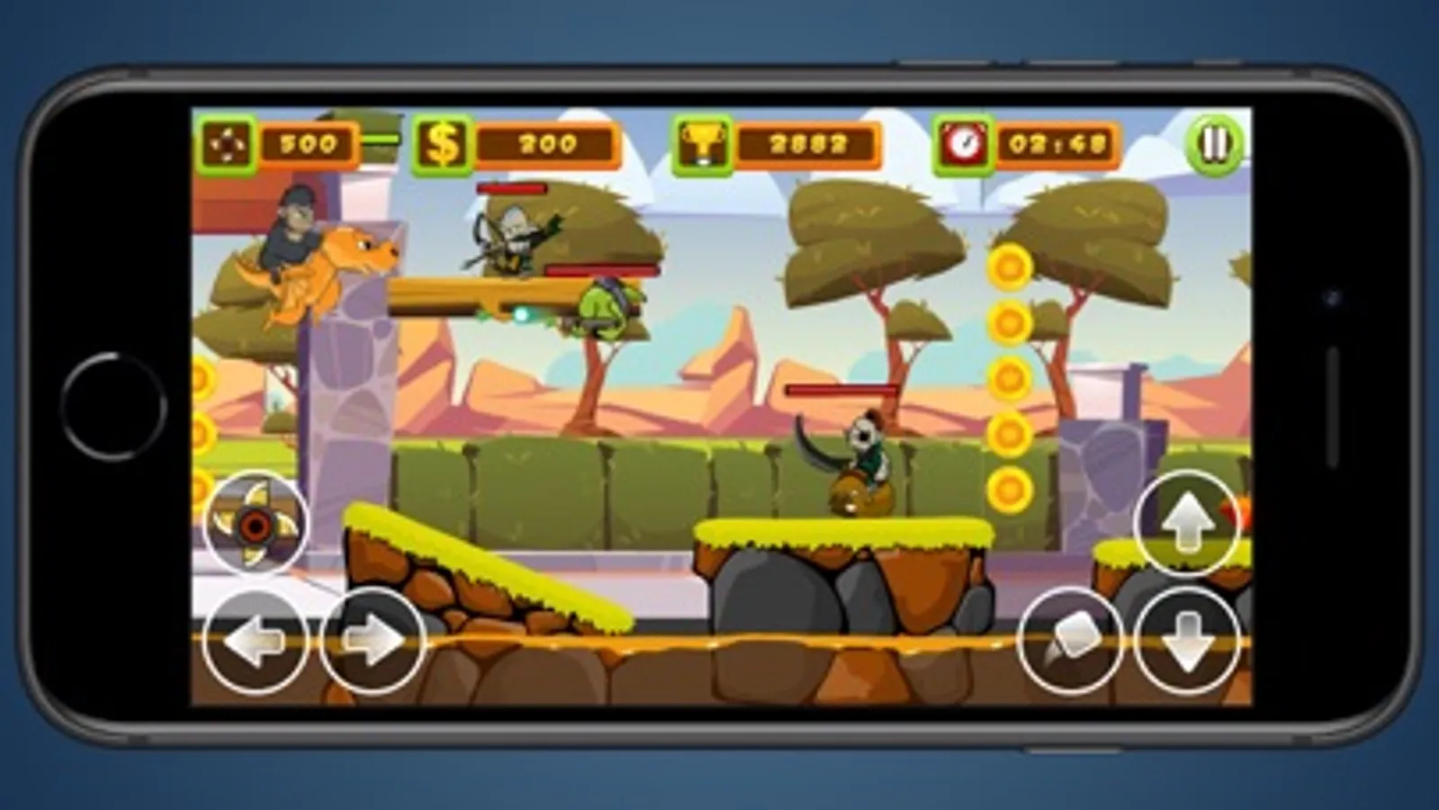 This game’s purpose is to beat levels while riding along with Tea the Gorilla and his trusty sidekick Scorch the Dragon as they battle monsters.