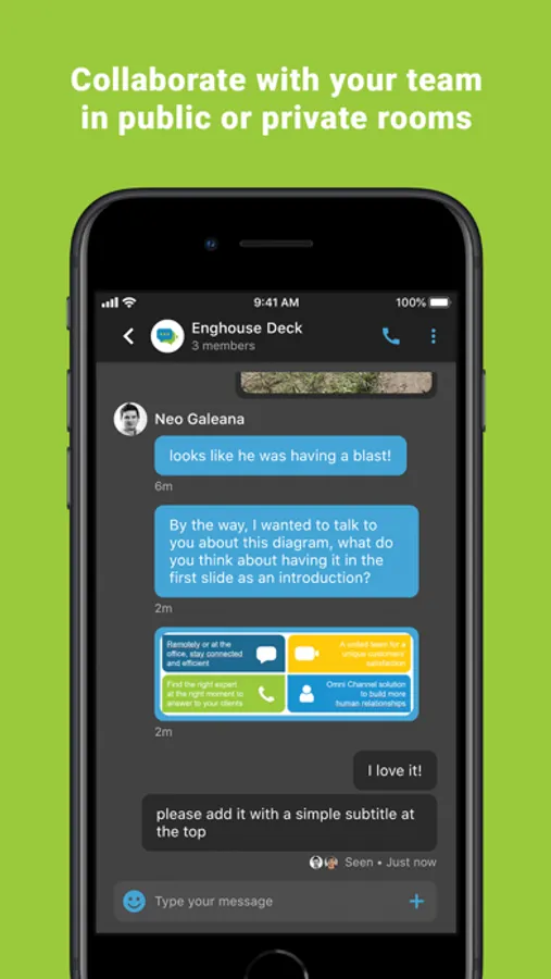 • Create private or public rooms for specific topics, projects or anything your teams need to collaborate.