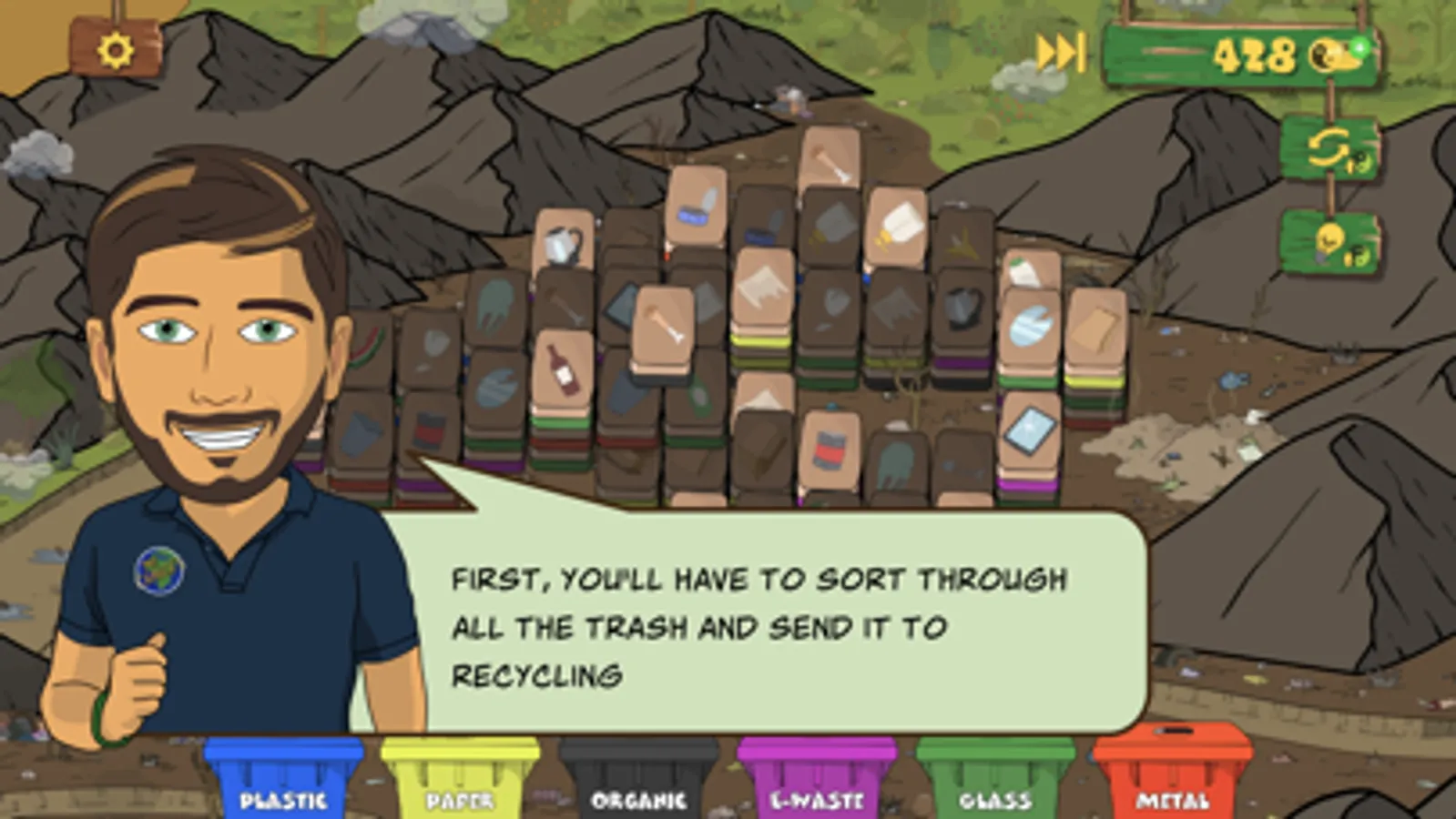 The game develops the habit of sorting wastes and shows how plants reduce the level of greenhouse gases in the atmosphere.