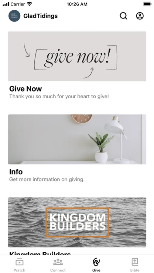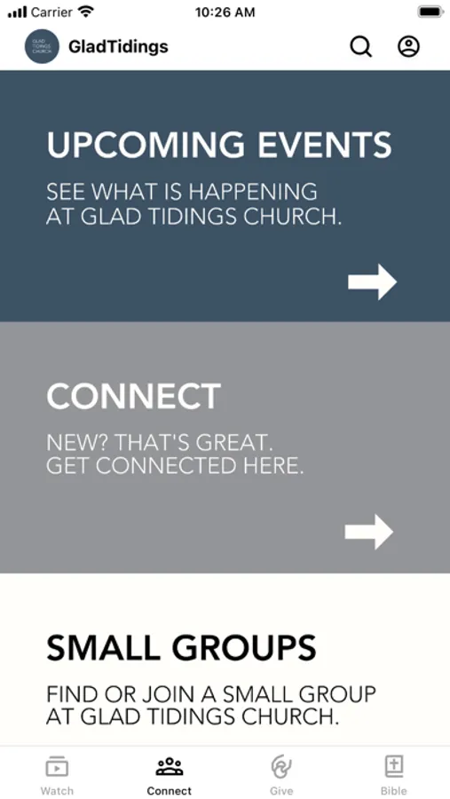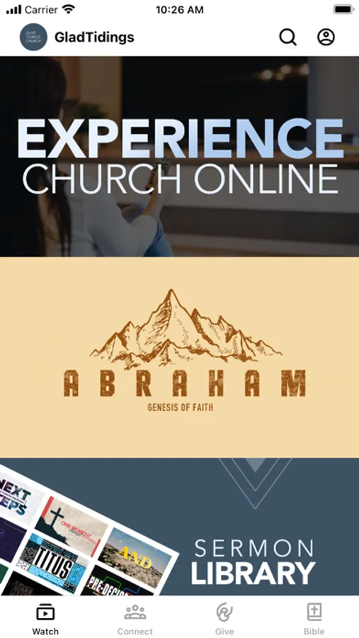 This app will help you stay connected with the day-to-day life of Glad Tidings Church. With this app you can: watch or listen to past messages; stay up to date with future events, receive push notifications; share your favorite messages via Facebook, or email; and download messages for offline listening.