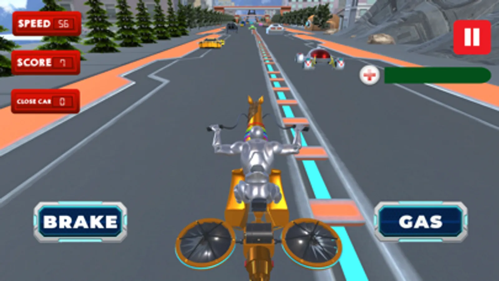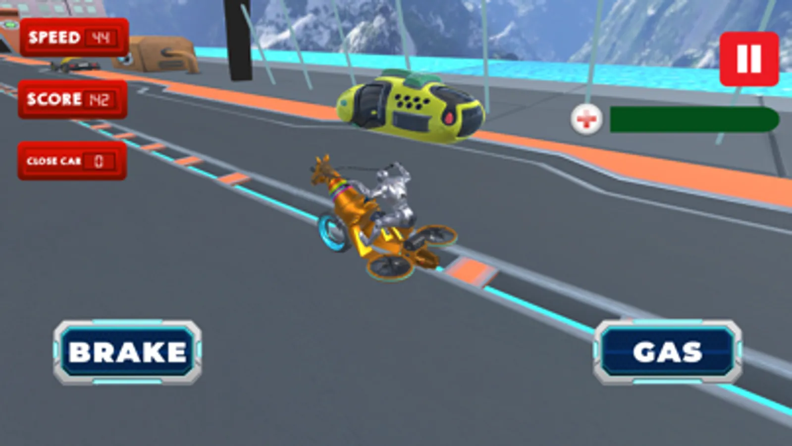 Hop on your Sci-Fi Motorcycle and race at high speed in traffic in the sci-fi metropolis! Upgrade the abilities of your Sci-Fi Motorcycle to become the King of the Highway!