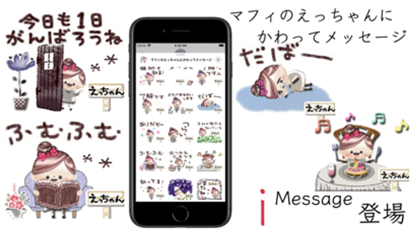 ラインのお名前スタンプマフィ〜にかわってメッセージでお馴染みの FaaIndustryです。マフィのえっちゃんにかわってメッセージiMessageステッカー初登場!こちらは静止画ステッカーになります。全国のえっちゃんへ。えっちゃんへのプレゼントにもどうぞ。