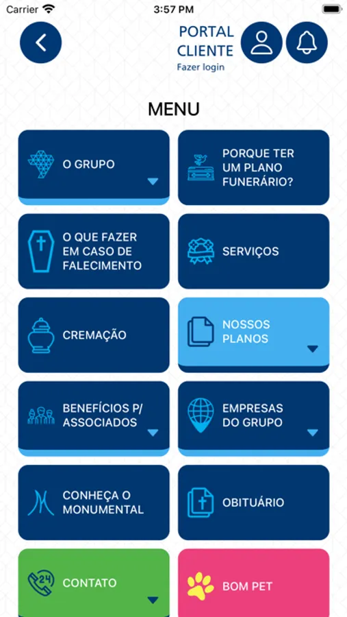 Baixe nosso aplicativo, informações gerais, nossos planos, nossas unidades, área do cliente, entre outras informações, sendo cliente ou não você é bem vindo.