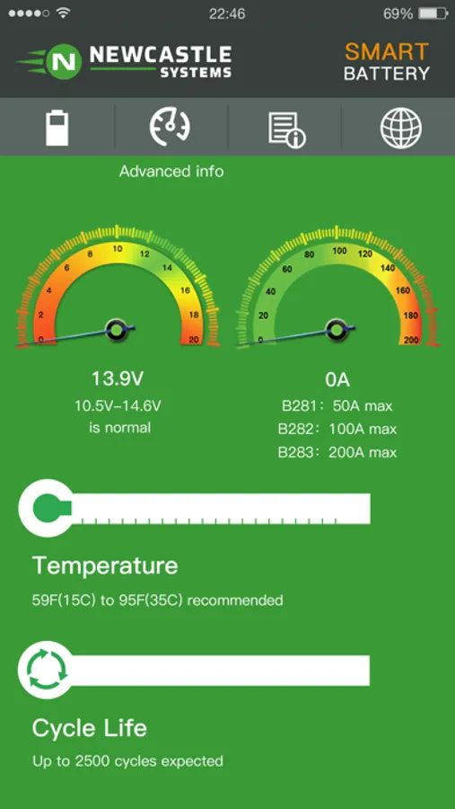 This app allows you to connect to all of your Newcastle Lithium Ion batteries.