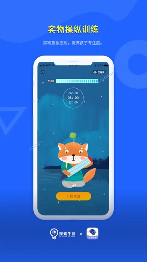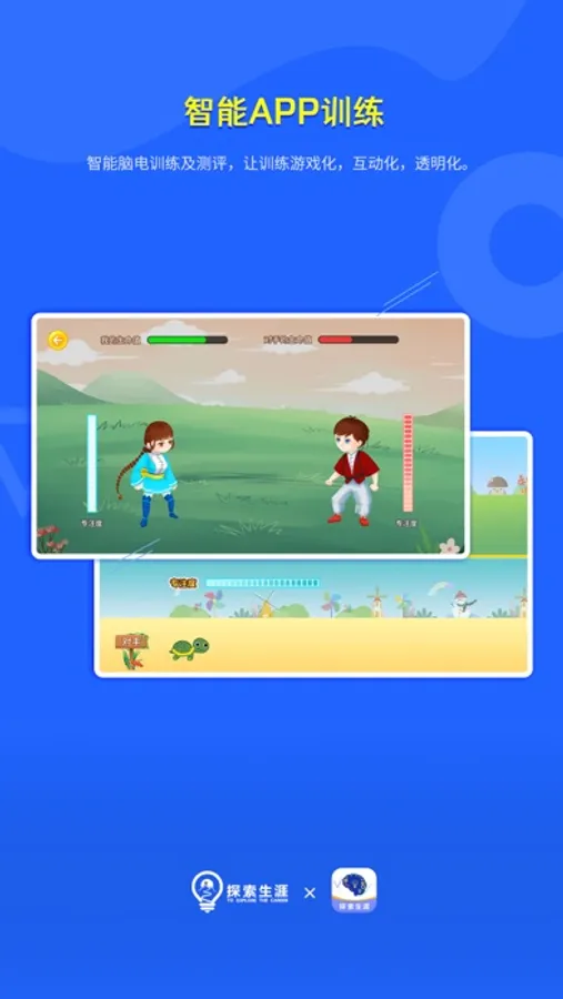 脑探索APP功能强大,通过科学专业的核心算法,将实时监测的脑电数据转化为可视化,透明化的数据指标,不仅可以通过测评实时观测脑电数据,也能通过“意念”控制进行多样化的专注训练,最终实现在游戏中提升大脑能力的目标。