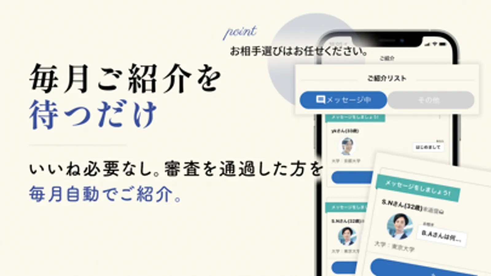 厳正な審査を通過した方を毎月自動でご紹介