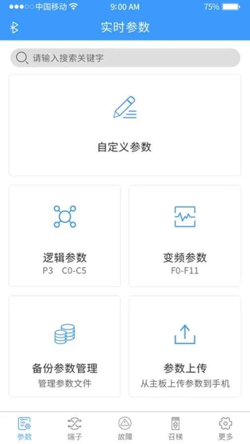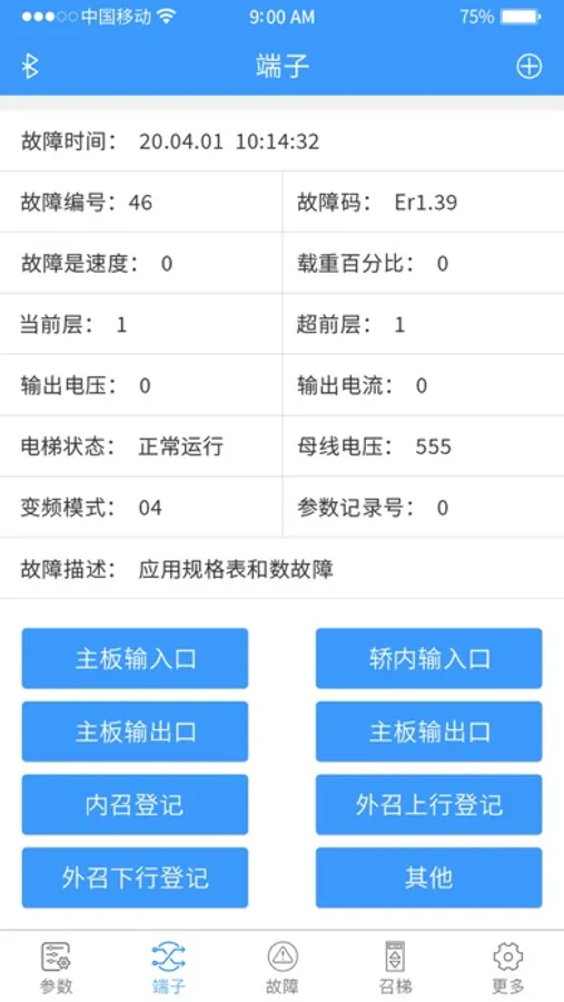 電梯調試工具,通過藍牙連接通訊,可以調試、監視、控制電梯。可以實時監控電梯運行狀態、運行參數,查看功能碼參數,故障信息等功能。