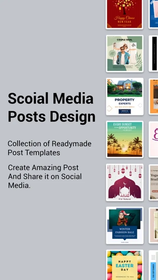 Social Media Posts Design App is Social Media Posts Maker app helps the user to create amazing posts and share it on various social media platform.