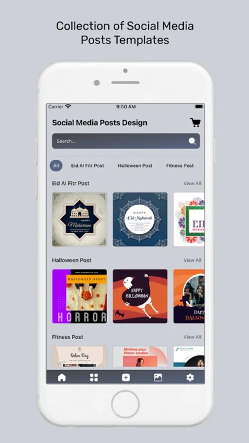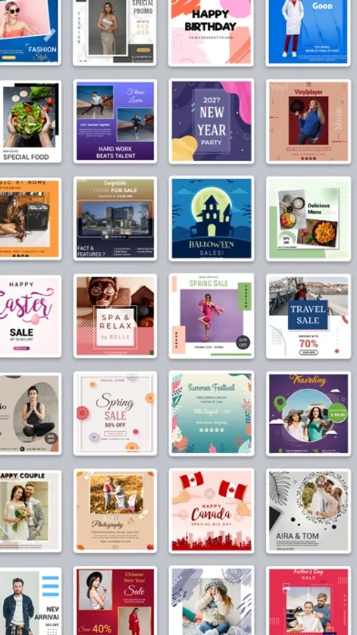 Social Media Posts Design App provides the collection of posts templates like Fitness Post, Sale Post, Festival Post, Heath Post, Party Post, Wedding Post, Photography Post and etc.