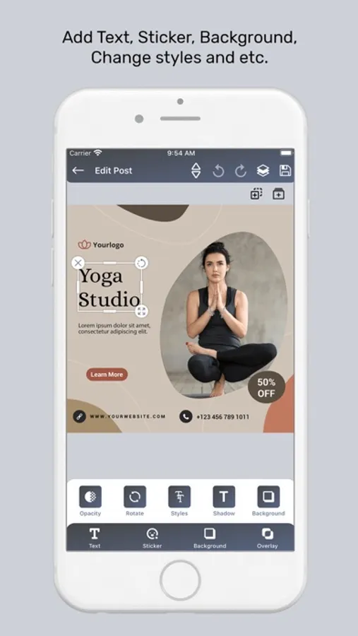 Social Media Posts Design App is Social Media Posts Creator, Post Maker, Posts Creator, Social Media Posts Designer app. User can choose template and change text styles, add text and stickers, background, move text/stickers from one place to another place and rotate, flip, scale size and etc.