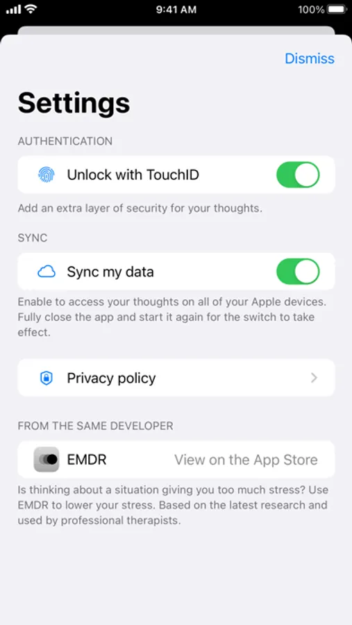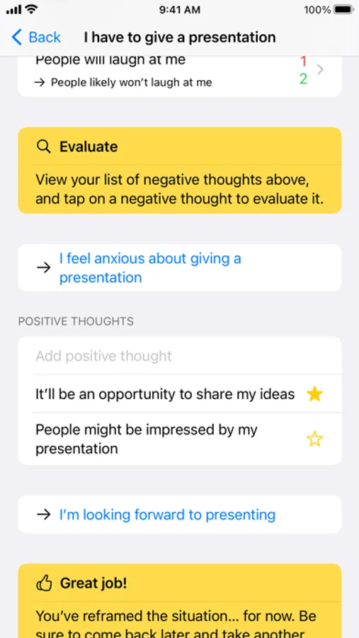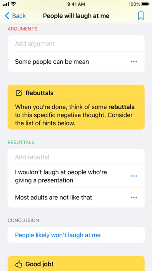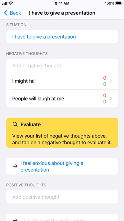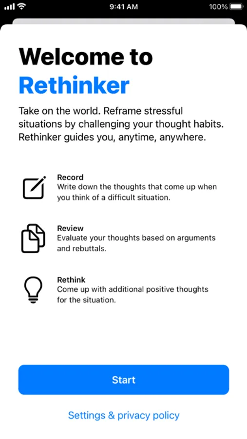 Rethinker helps you to cope with stressful or triggering situations. Develop a milder and healthier response to these situations by challenging your automatic thoughts. With apps available for iPhone, iPad and Mac, Rethinker guides you anytime, anywhere.