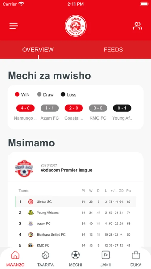The app gives football match updates, and timetables, and shares thoughts with other Simba SC community members.