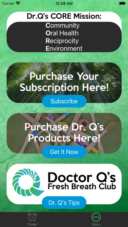 QBrush helps you brush properly with its Toothbrush Timer and while educating you with valuable Dental Hygiene Tips from Dr. Q himself!