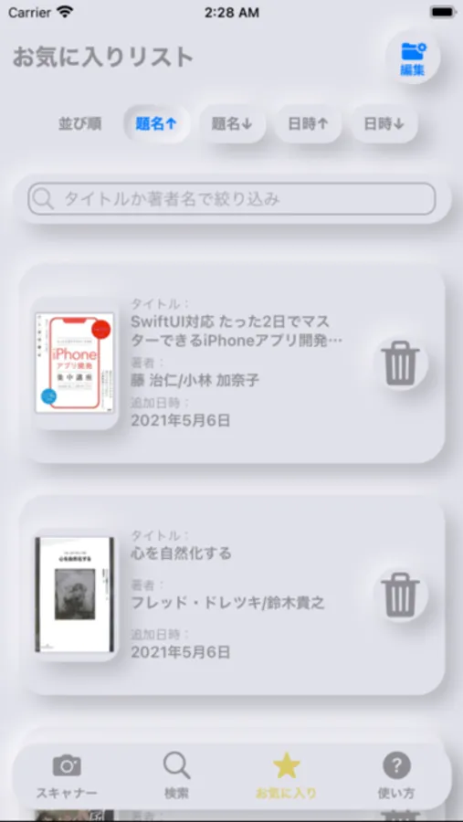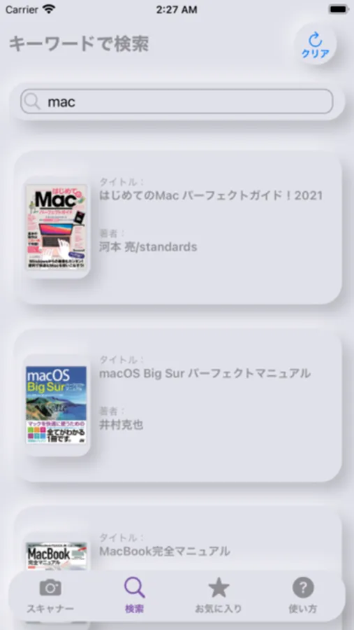 ・検索した書籍をお気に入りリストに登録して管理することが出来ます