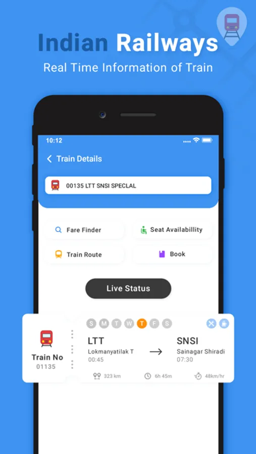 The train app has the Indian Railways timetable offline. You don't have to know train number or names as our Smart search feature allows you to use train source & destination or partial train names even with spelling errors.