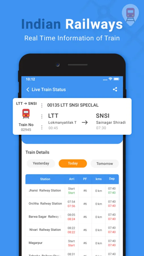 Get live train status of Indian Railways anytime, anywhere. When you are traveling on a train, this feature can work without internet or GPS as it uses cell tower information to find the location. You can share current train location with your friends & family via the share feature. You can also set an alarm to wake you up at a fixed time before your railway station arrives.