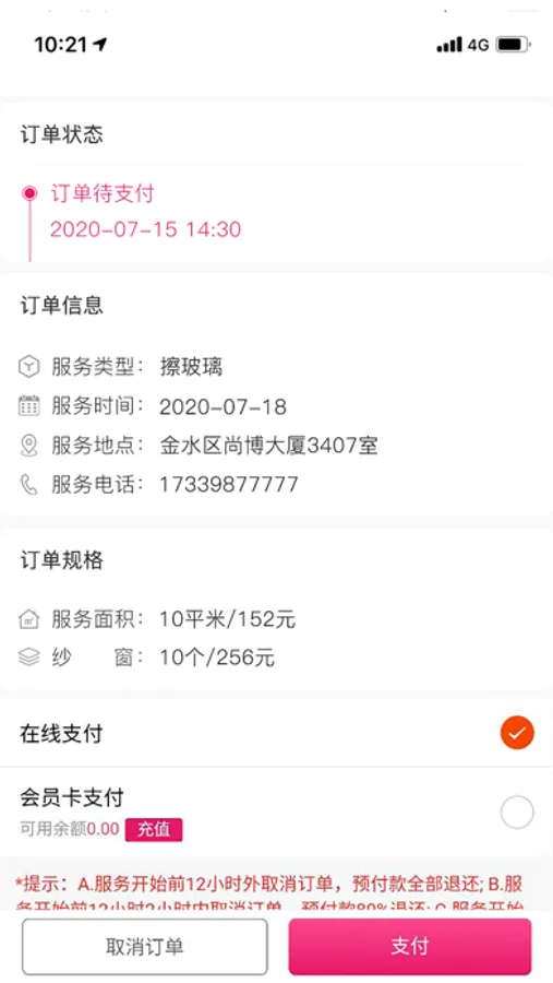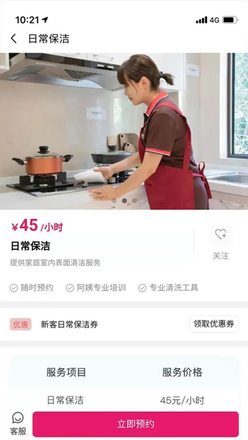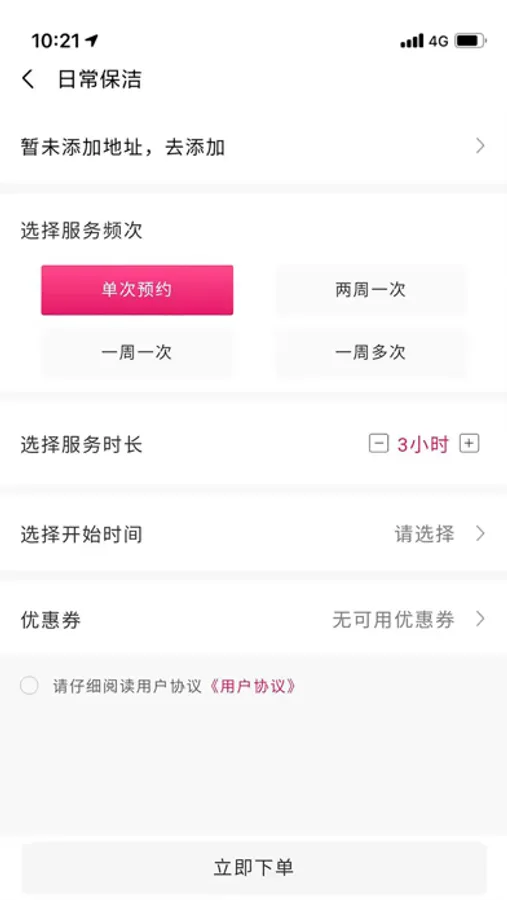 app中提供线上预约各类家政服务的功能,方便用户快速下单