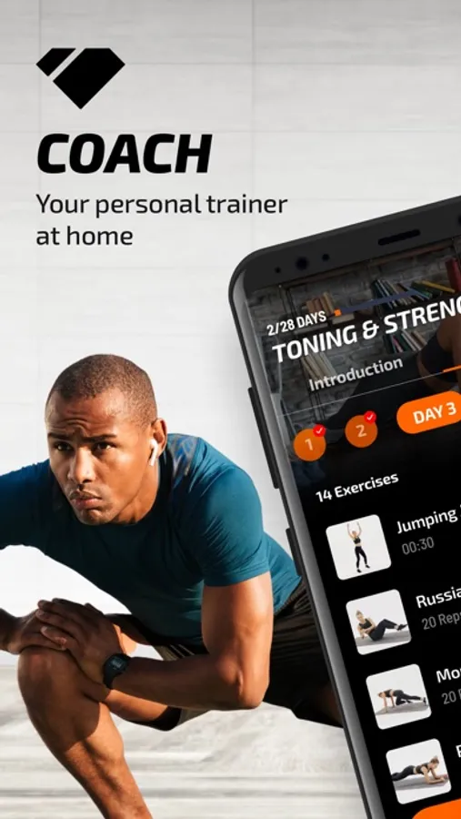 Coach is your private fitness coach at home. Your coach will design a professional and tailored training plan to help you lose weight, tone muscles, or keep fitness without a gym.
