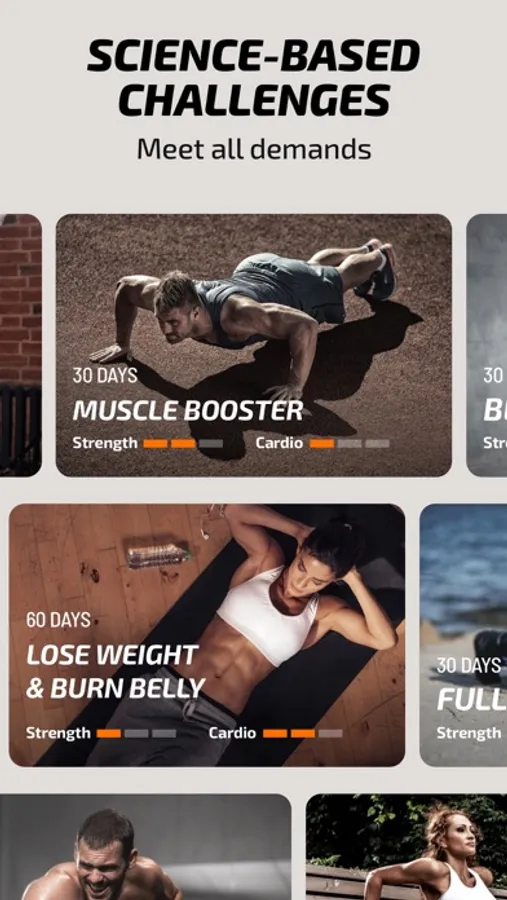 We offer nearly 15 delicate plans and get you covered with reasonable challenges from 28 days to 60 days, varying from fitness focus and goals. Plans are divided into the adaptation stage, target focused stage, and final challenge stage. Scientific staged design enables you to adapt to training tempo and to strengthen and keep your exercise results.