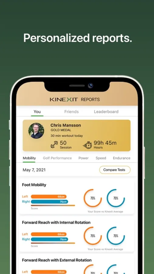 When you work out regularly, your body improves, and you become stronger and more flexible. You will need new exercises to stay challenged and to enjoy your workout. That’s why we recommend taking the mobility screening every 4 weeks. By doing so, our platform will refresh your exercises based on your new and improved fitness levels. You will never have to worry whether the exercises you’re doing are right for you and your golf game. They are, because you’ve taken the mobility screening.