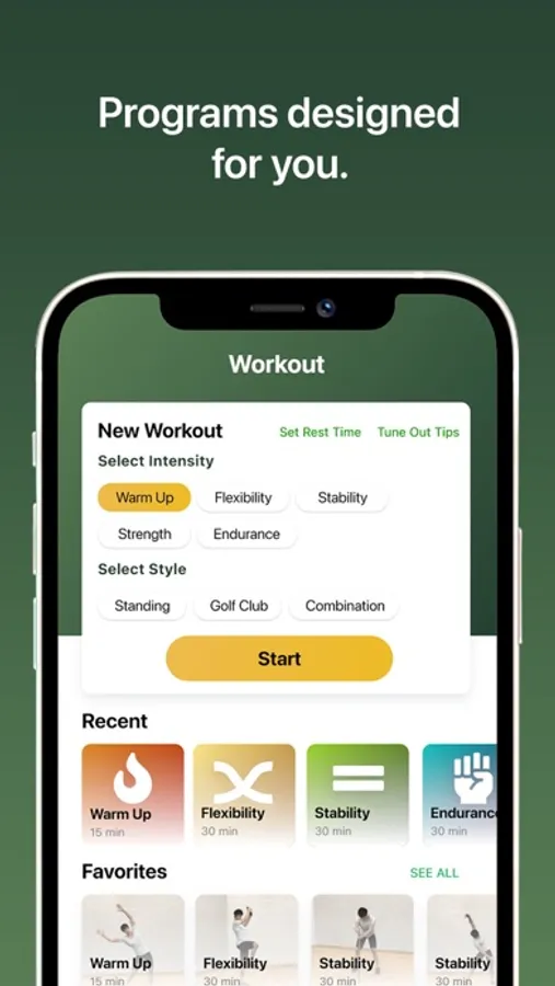 Your workout program is created based on a 7-step mobility test which takes up to 15 minutes. Based on your results, our platform will select between more than 700 different exercises to create the perfect golf fitness program – FOR YOU. You will get four different exercise programs: Flexibility, Stability, Strength, Endurance