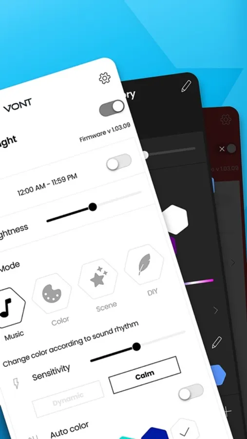 Manage your Vont Strip Lights and Vont Smart Light Bulbs at the same time – and paint the town on the dot. Just go to the home screen, tap Scenes to create a group control setting, and you’re good to go.