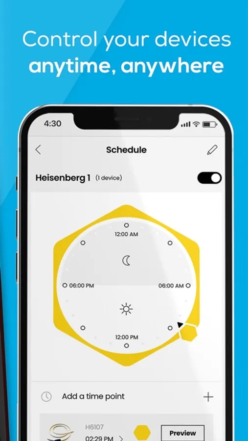 Turn basic routinized switching into afterthoughts by scheduling your device. You can also set a time for grouped devices and enjoy the perks at a specific time with one simple command.