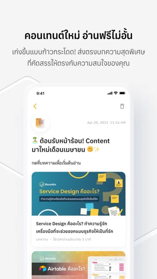 Whether you're looking to acquire new skills for your current job, or just want to learn something new, Skooldio has everything you need to succeed. So download our app today and start your learning journey!