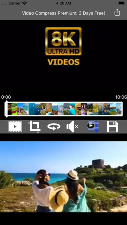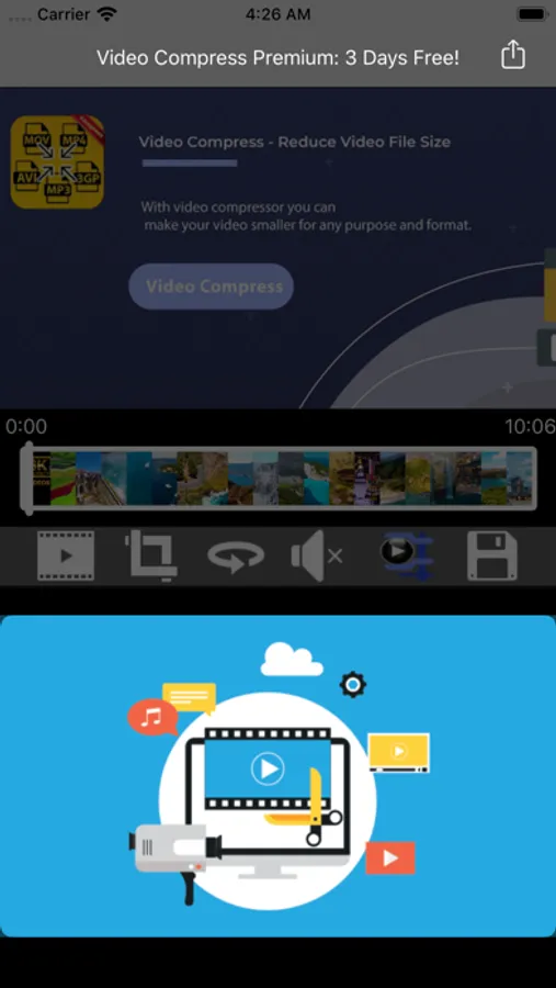 This tool compresses, trim, crop, rotate, mute video files with simple steps & save them to your phone.