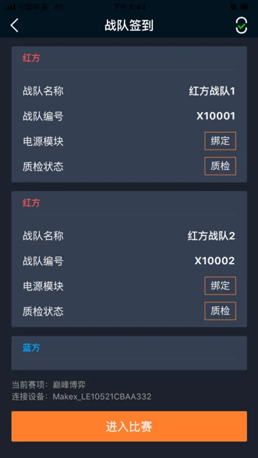 2、正式比赛模式,登录裁判账号以后能够自动获取赛程、对比赛进行执裁计分并上传,极大地为比赛组织者提供便利。