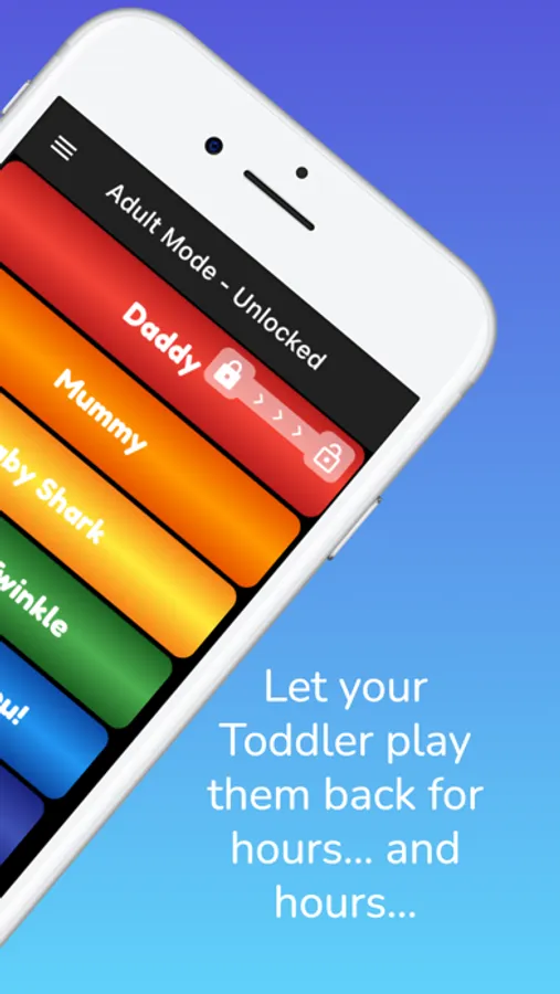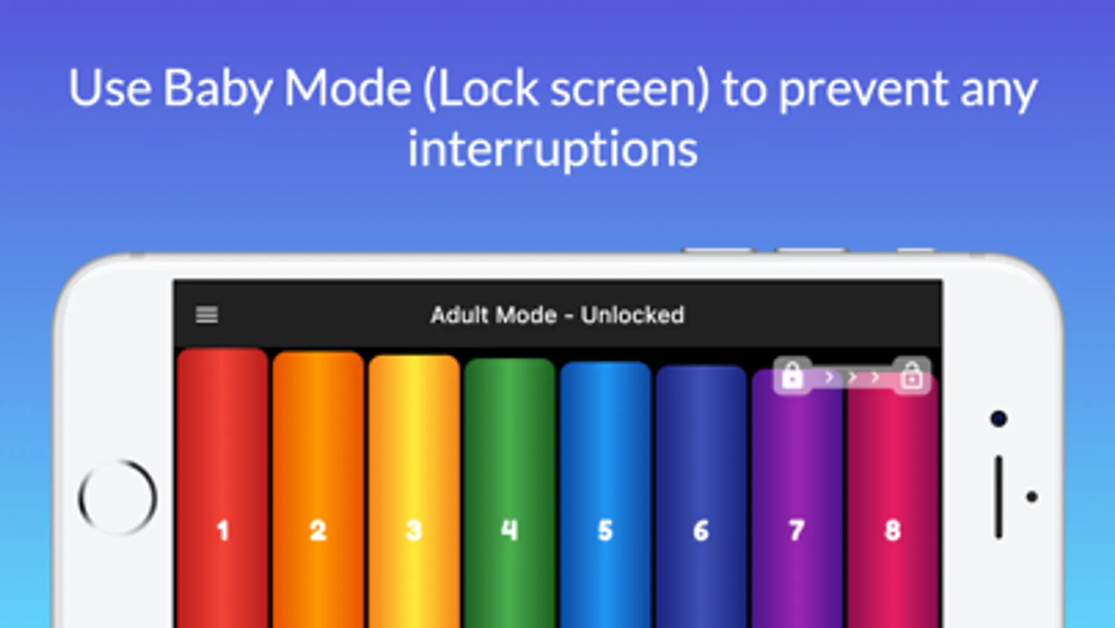 Lock screen "child mode" the play won't be stopped by them changing the screen or closing the app. Perfect for children from 6 months to about 4 years old.