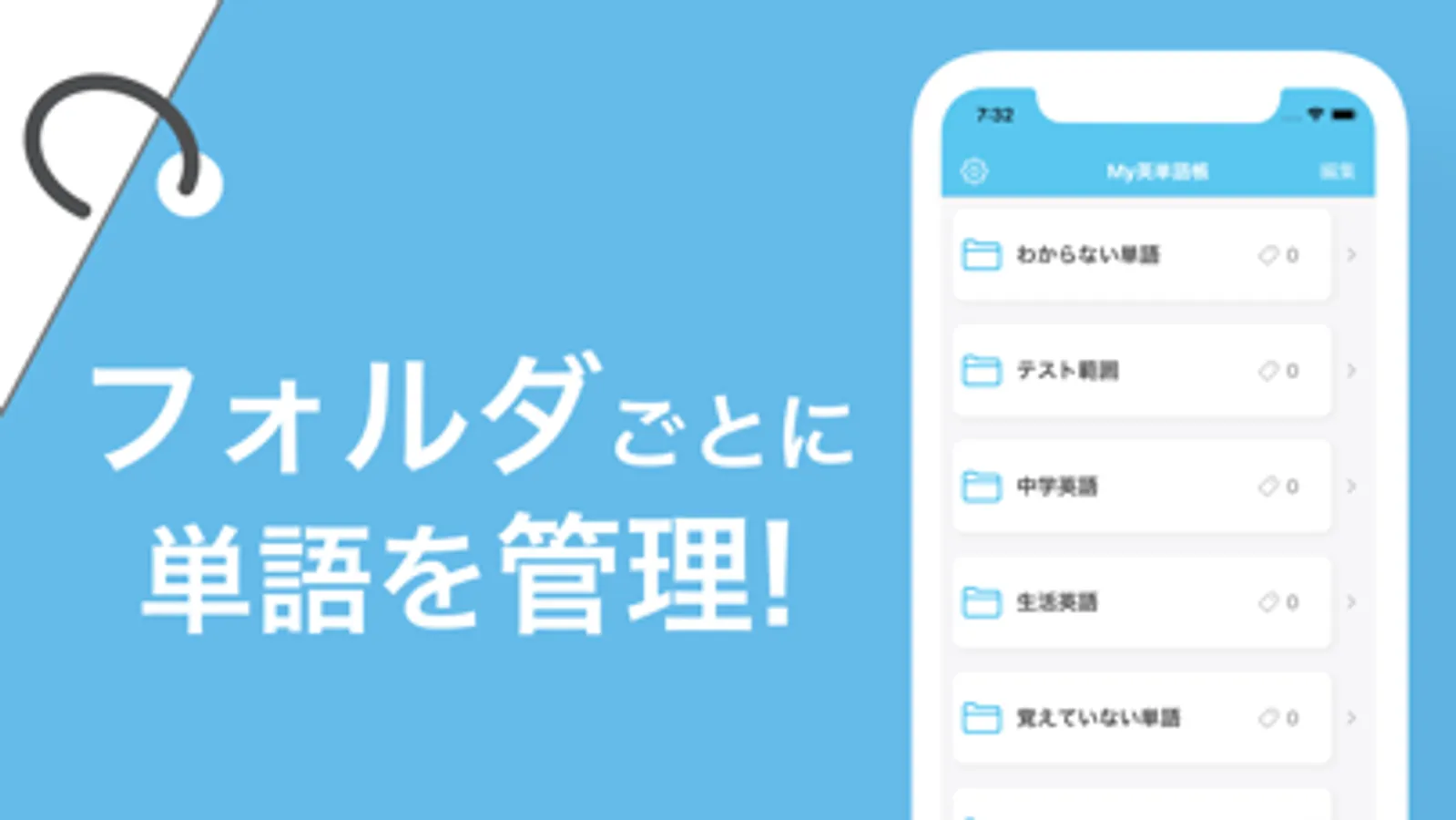 フォルダごとに単語を登録できるシンプルなアプリです。覚えたい英単語や用語を追加して、単語や意味をテストすることができます。なお、予め単語は登録されていませんので自分なりの単語帳を作りたい方などに最適です。