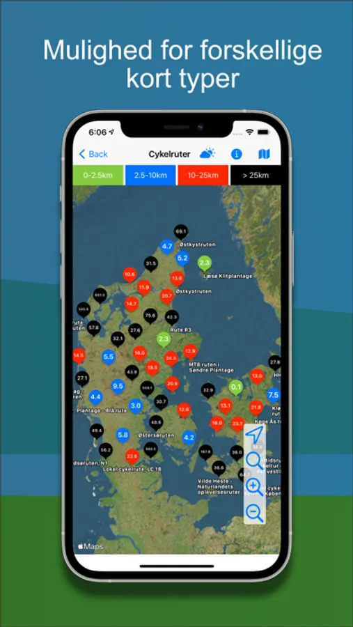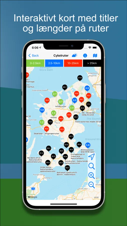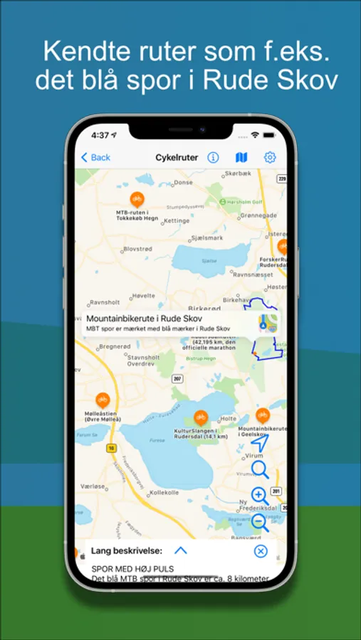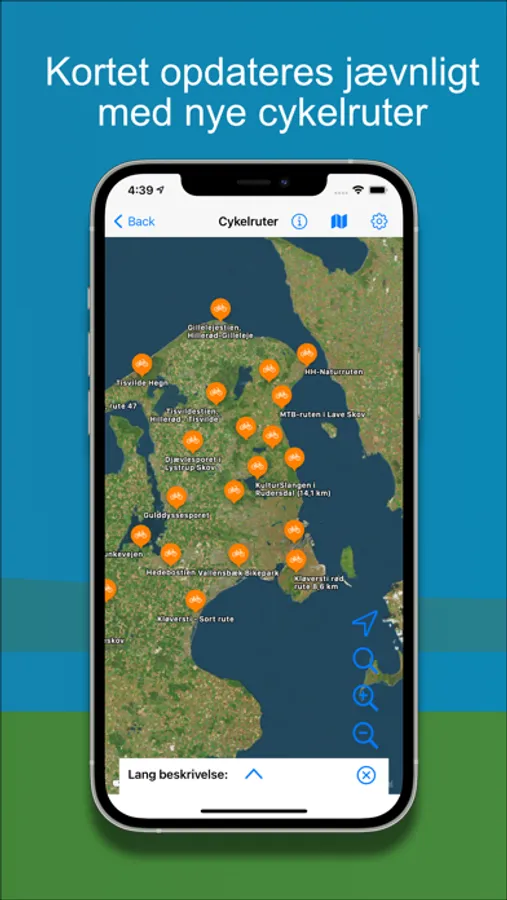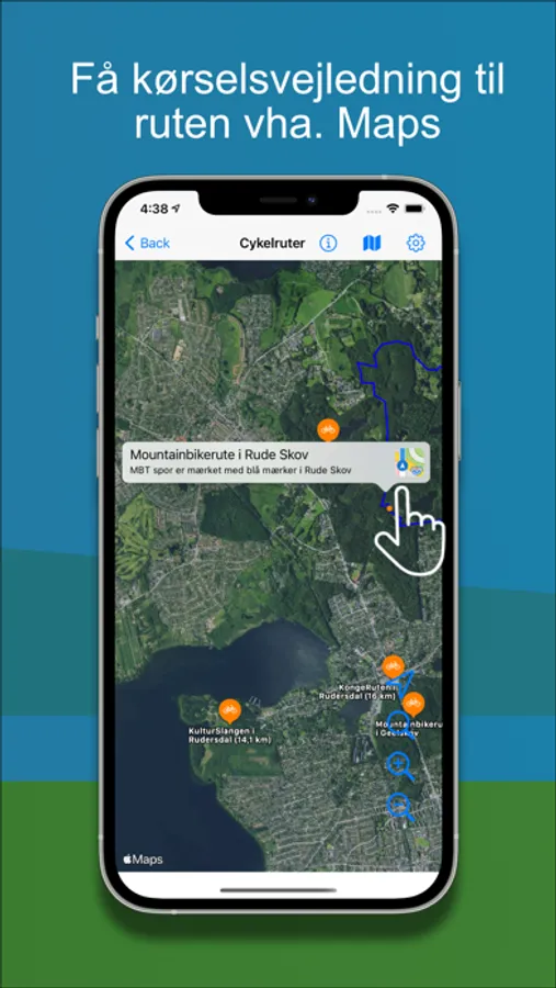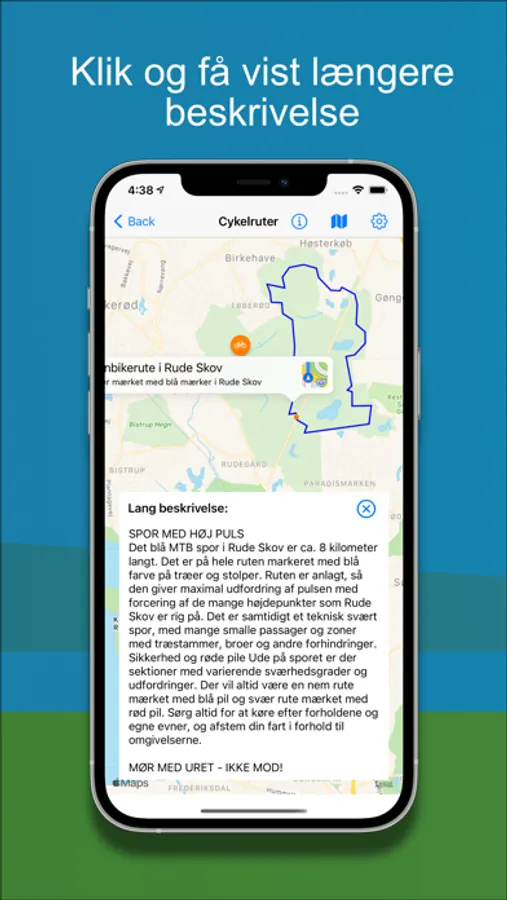 Klik på ikonet og læs om ruten. Klik på Maps-ikonet for at få kørselsvejledning til ruten.