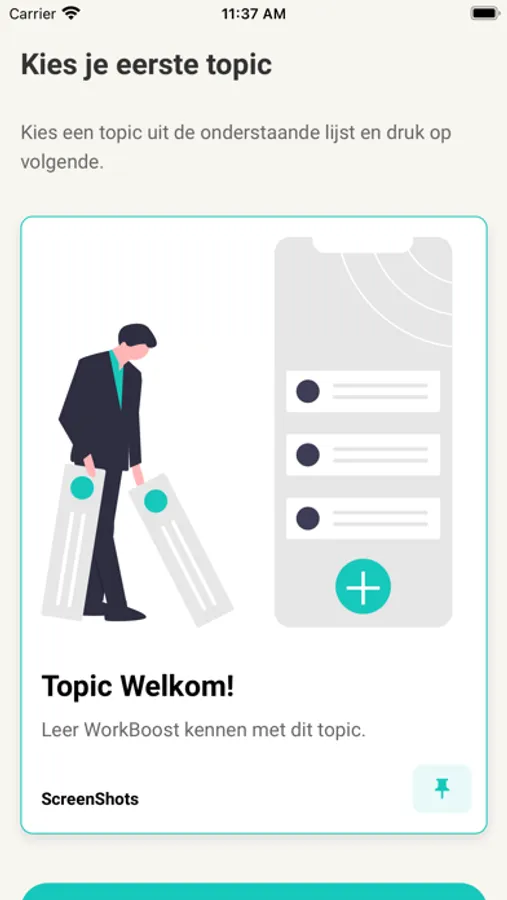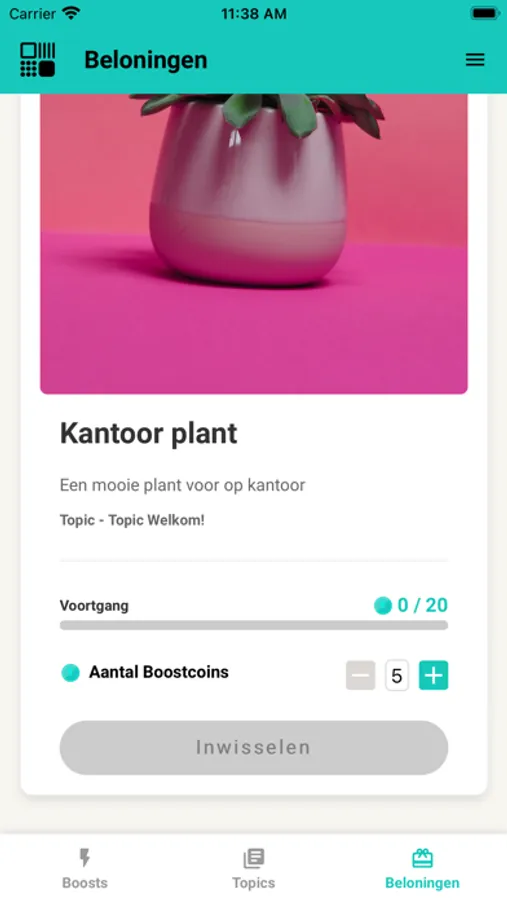 Je wilt werken aan je professionele ontwikkeling maar door de waan van de dag kom je er niet toe. WorkBoost helpt je om toch elke dag een stap richting je doel te zetten! Daag jezelf uit met verschillende Acties, Quizen en Check-ins om stapje voor stapje nieuwe vaardigheden te ontwikkelen in de onderwerpen die jij interessant vindt. Voor elke ontwikkel stap ontvang je BoostCoins: de valuta waarmee je initiatieven van je collega's of je organisatie kan sponsoren. Zo geeft jouw ontwikkeling ook een boost aan anderen.