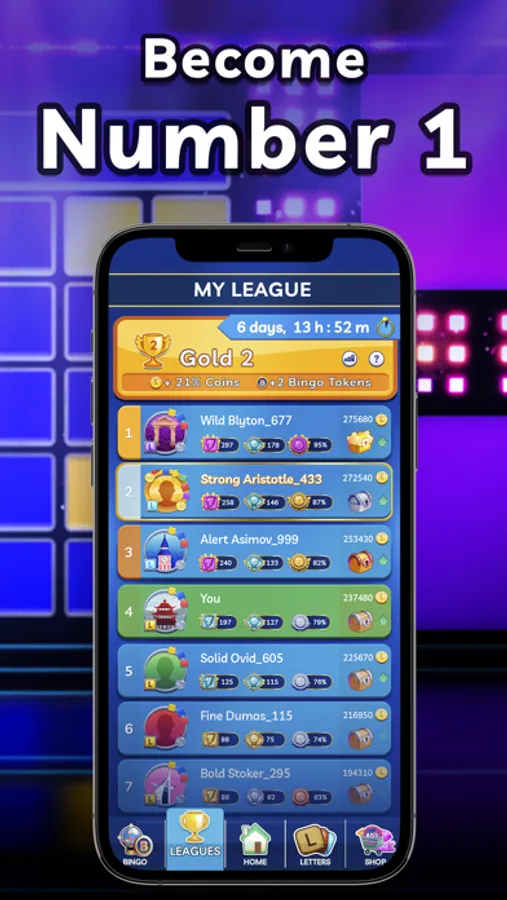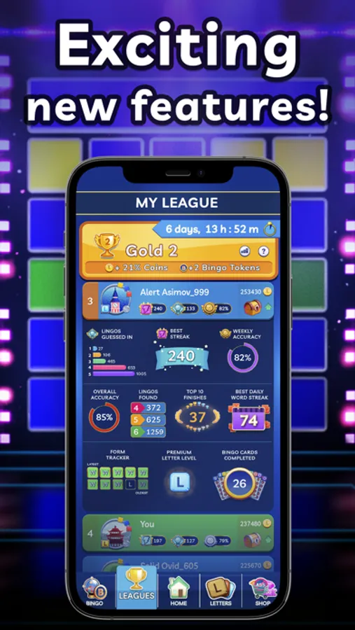 Join others by taking part in Lingo Leagues and rising through the ranks as you play. Pit yourself against other fans of the show on your quest to the top. To help you solve the puzzle, make use of Boosters and upgrade your collectable Letter Tiles so they reward more points per game, don’t let those bigger words go to waste!
