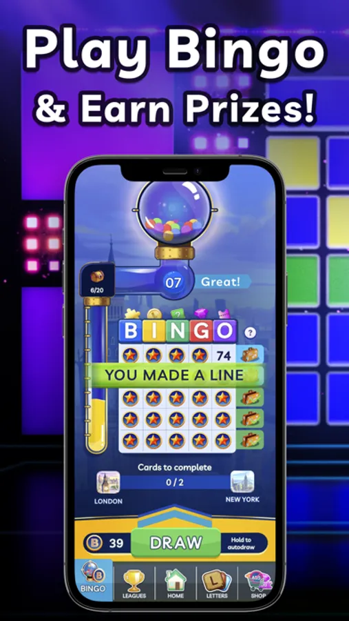 As you progress through and complete Lingos by guessing the correct word, you’ll earn Bingo Tokens. The more Bingo Tokens you earn, the quicker you can complete card! Bingo cards reward fantastic cases full of prizes and help you progress through 11 global city locations while your vocabulary improves with from daily word training!