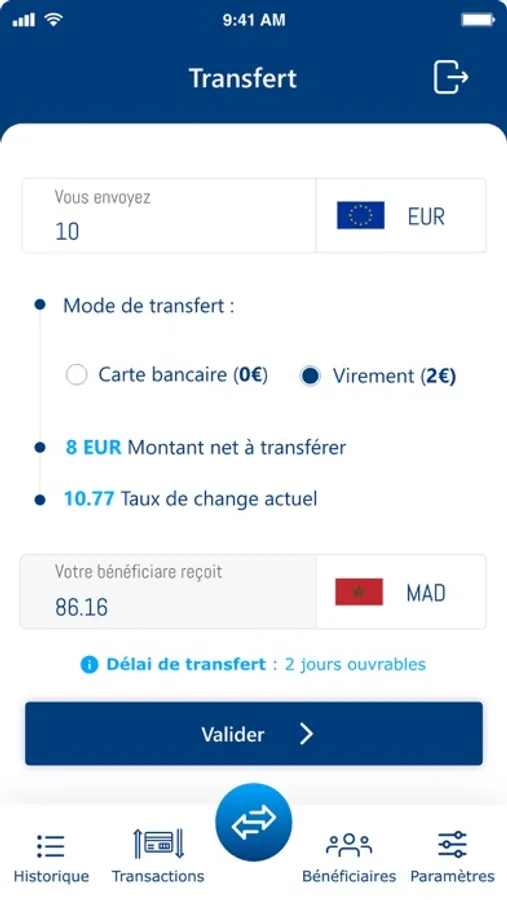 • Le transfert d’argent vers le Maroc par carte bancaire avec des délais très réduits et une tarification concurrentielle ;