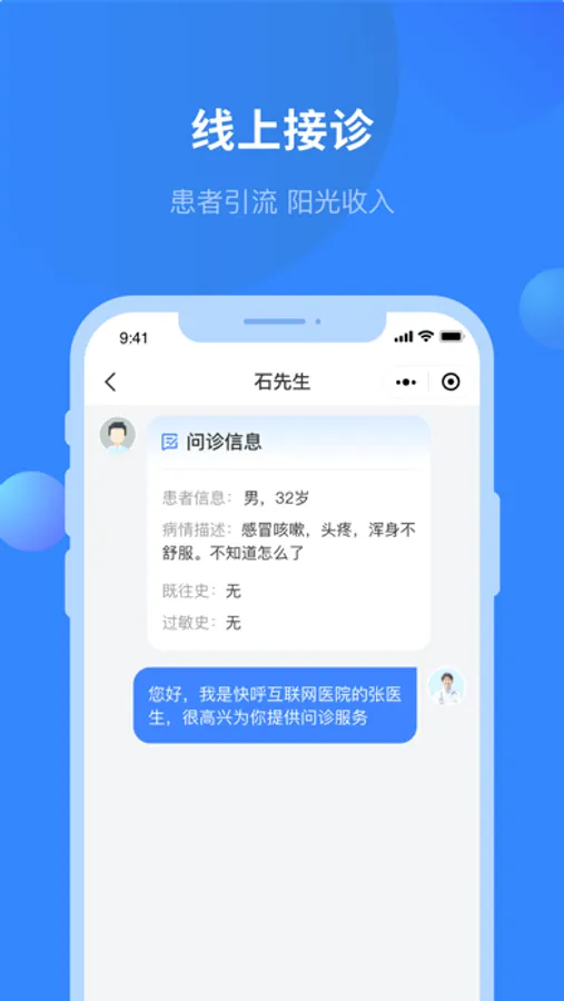 【在线问诊】医生利用碎片化时间随时随地开展线上多点执业,可进行图文、视频多种形式的问诊,获取阳光收入。