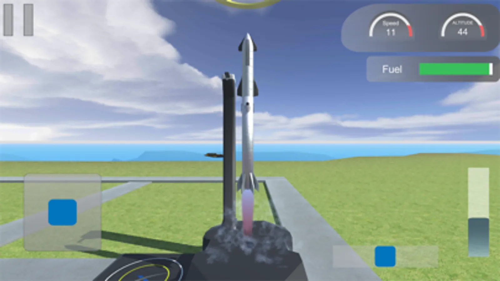 Use two pads to control rocket tilt and slider to turn on the engine.