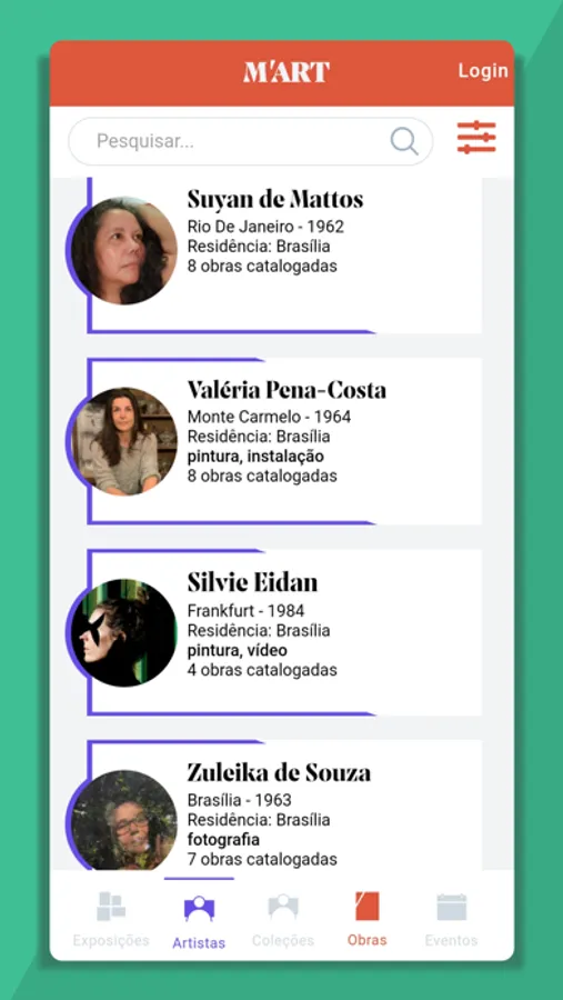 A M’ART é um projeto independente criado em Brasília e em seu lançamento apresenta artistas com produção em arte contemporânea e atuação no Distrito Federal. Ao instalar o app, o usuário M’ART terá acesso a um amplo catálogo, onde poderá descobrir novos artistas ou acompanhar as criações de seus artistas favoritos. Trabalhamos para ampliar nossa capacidade e convidar mais artistas, visite nosso site para mais informações caso tenha interesse em criar seu perfil. Em breve instituições parceiras e amantes das artes visuais também poderão catalogar obras, criar coleções, ampliar e valorizar os seus acervos.