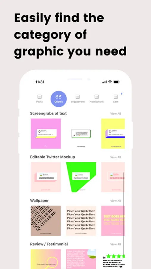 Template packs categorized by designs such as neutrals, boho, colorful, gradients and more for on-brand graphics everytime