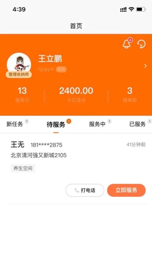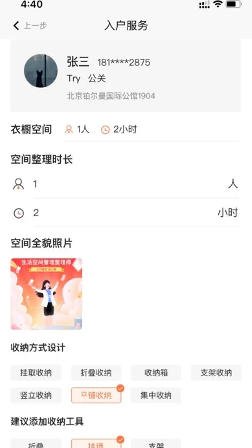 生活空间管理整理师是空间管理业务中帮助整理师完成从接单到入户服务全流程线上化的一款APP。
