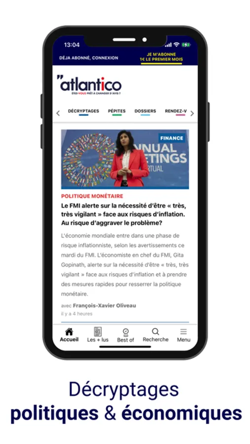 Premium: 0,99 € le premier mois, puis 11,99 € par mois, ou 118,99 € pour bénéficier de tous les articles et newsletters réservés aux abonnés, l’application Atlantico en illimitée sans publicité.