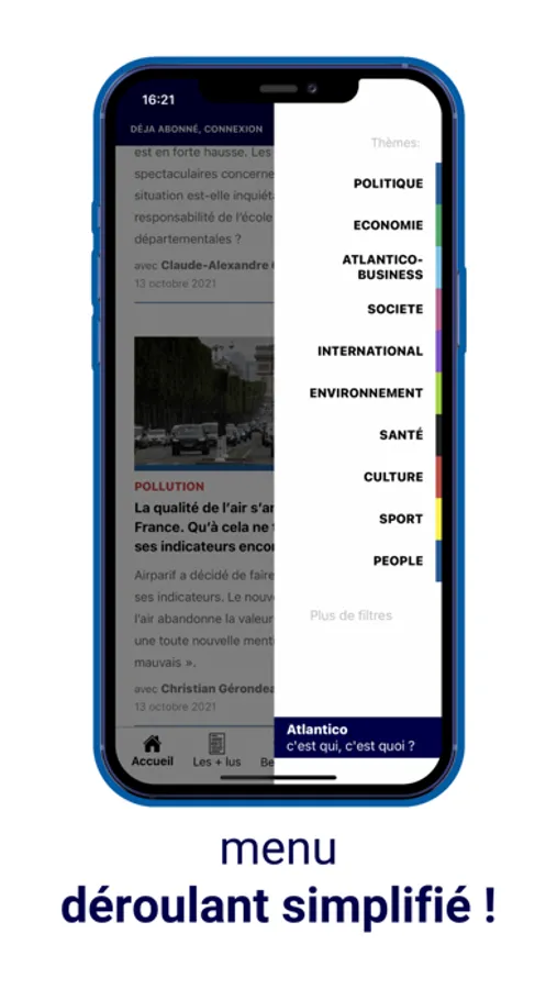 • L’application Atlantico se veut plus proche de vous, c’est pourquoi nous vous proposons les formats qui correspondent à vos habitudes (Textes, Vidéo, Podcast, etc..)