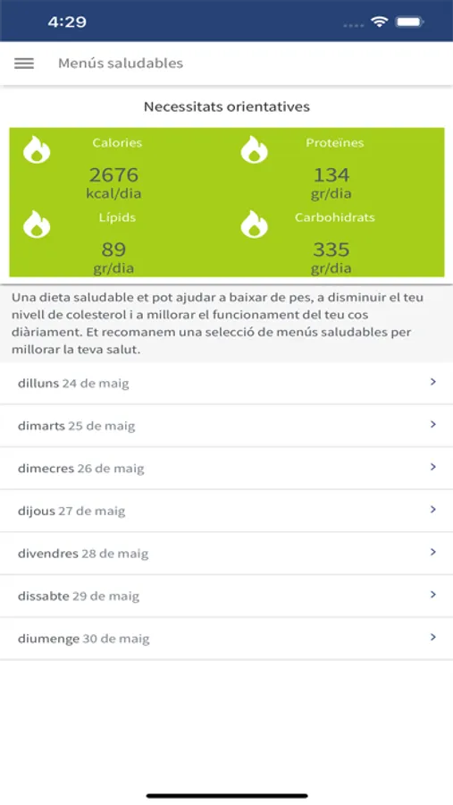 • Gaudeix d'una completa biblioteca de salut, en la qual trobaràs multitud d'articles sobre salut, benestar, nutrició i activitat física, com també una selecció de menús saludables en línia amb les teves necessitats nutricionals.