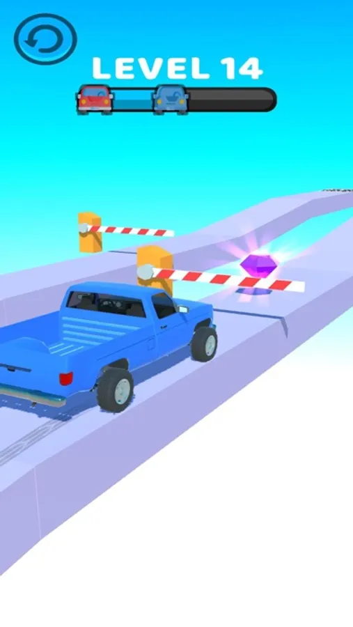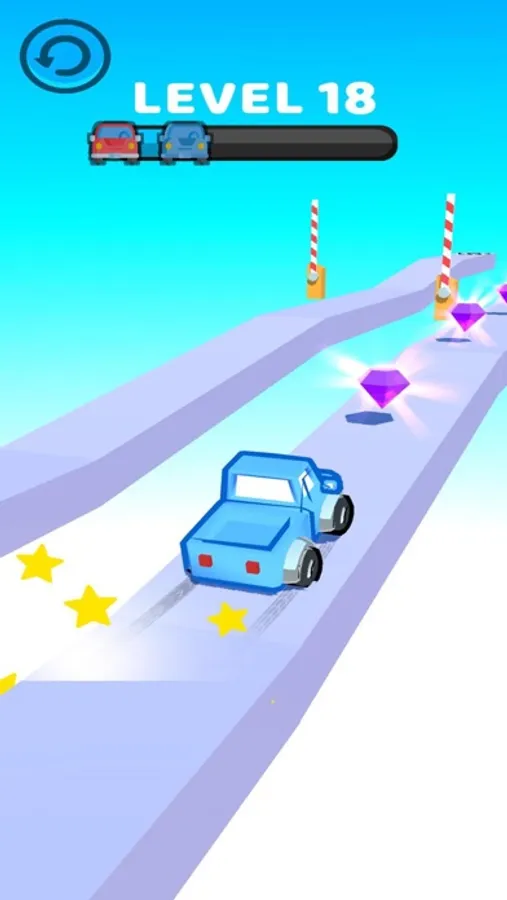 Pull the car backward enough to go forward perfectly and eliminate your worthy opponent! Collect the gems, reach the finish line and be careful for obstacles to win!