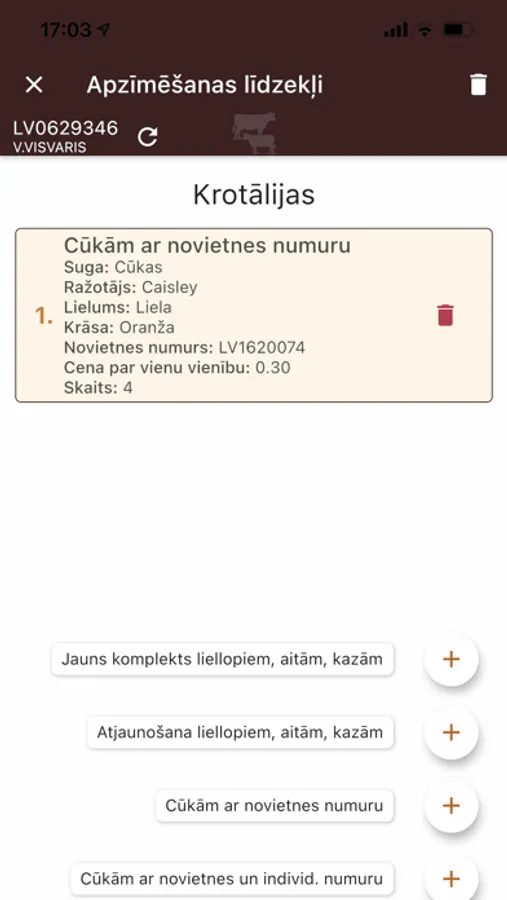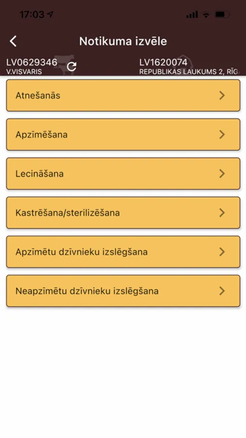 • Reģistrēt notikumus individuāli apzīmējamo sugu dzīvniekiem – liellopiem, aitām, kazām un zirgiem: