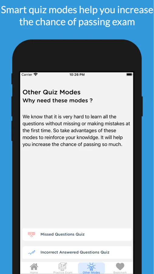 4.Examination mode will help you take test like a real exam. So you will be more confident.