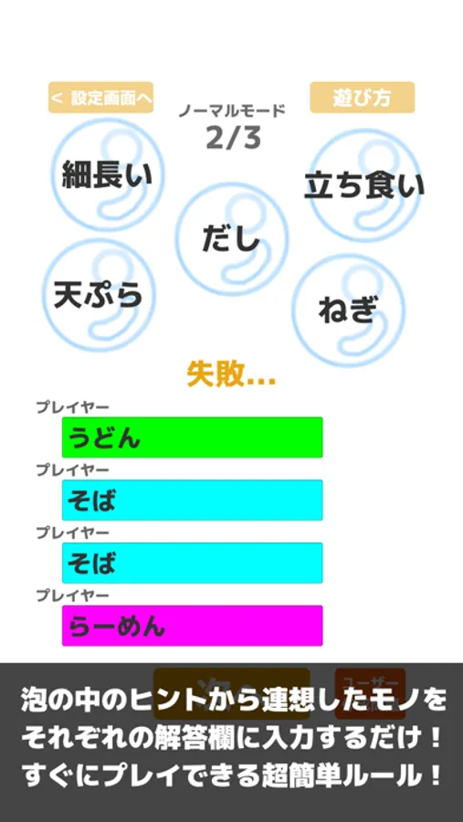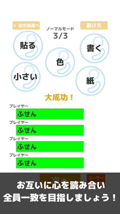 4.自分の番が回ってきたら泡の中のヒントを確認し、連想したものを回答欄に入力(他の人の回答を予想しながら)します。